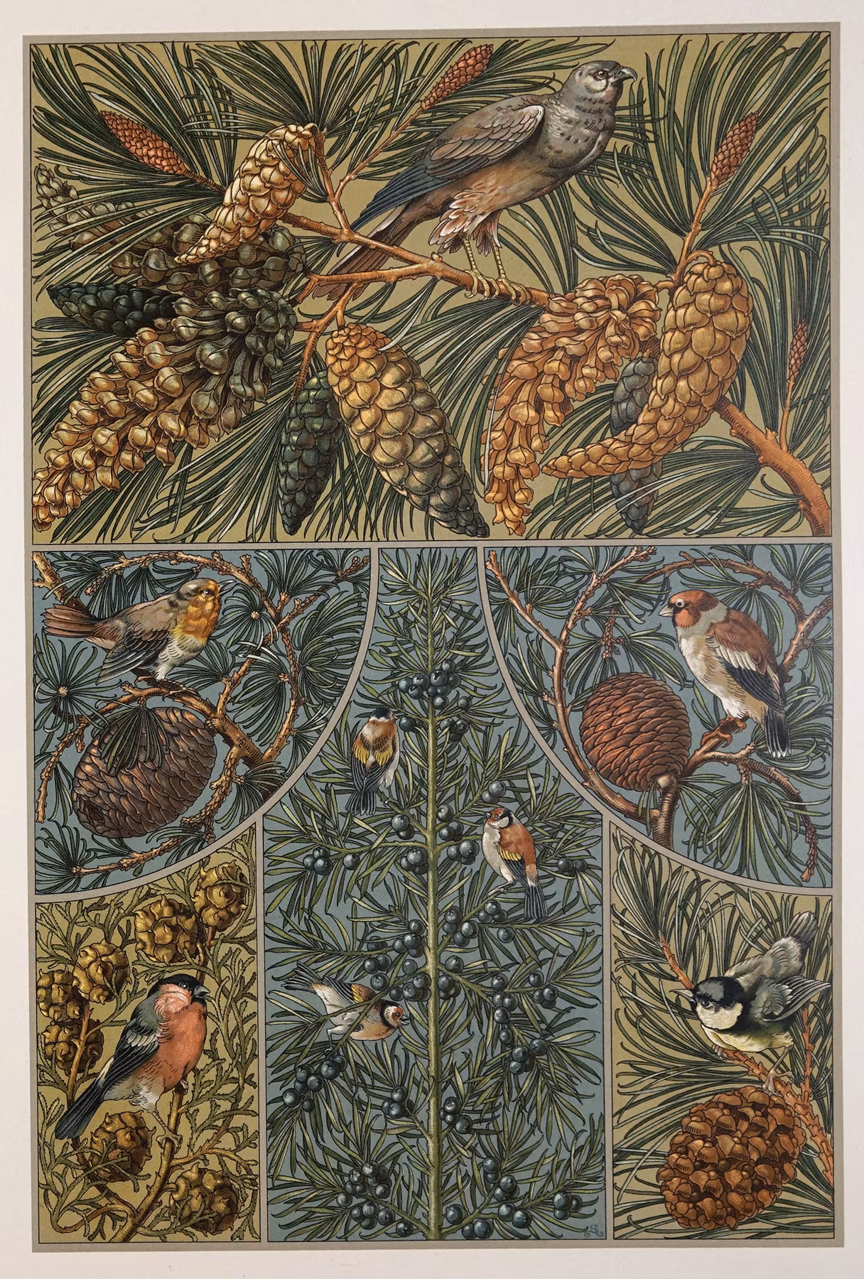 FÅGLAR I GRAN OCH FURU Jugend Ornament SEDER