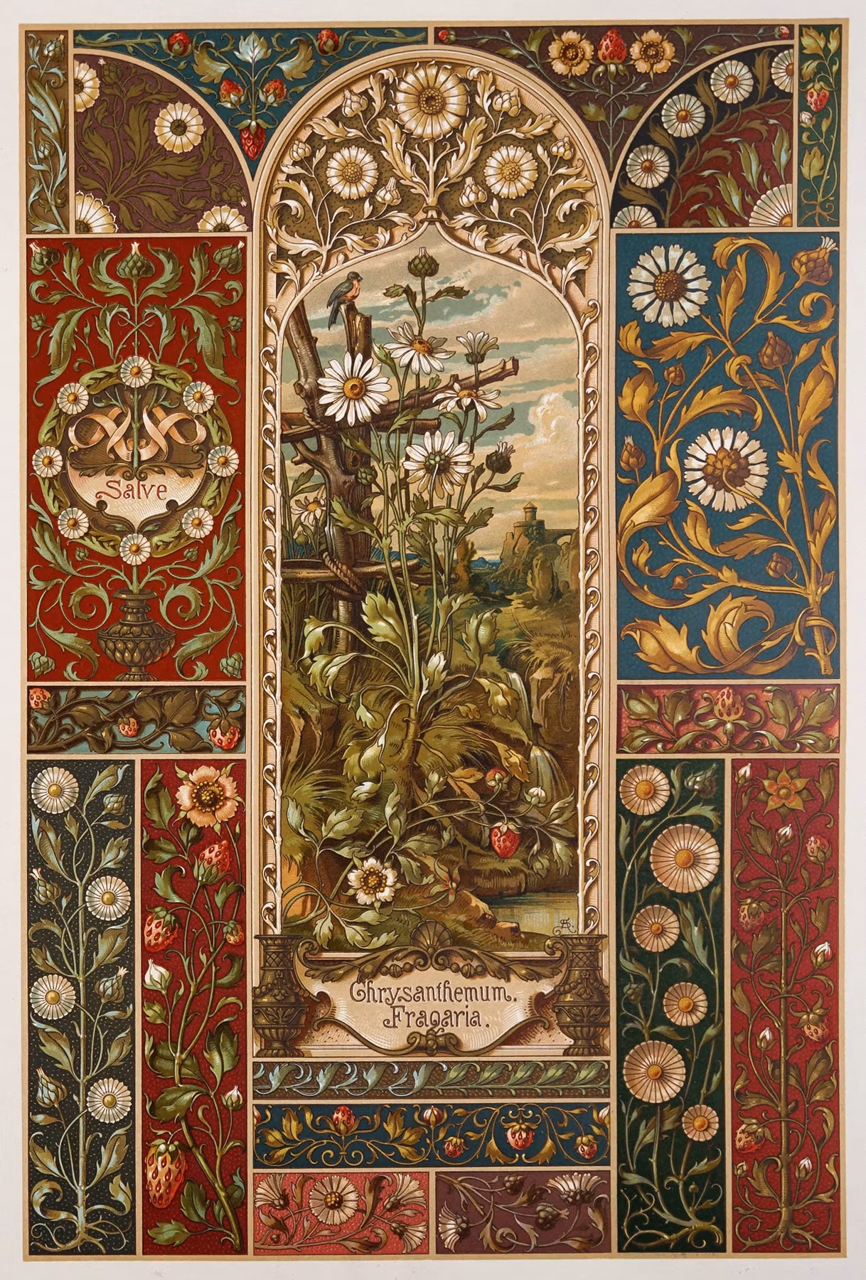 KRYSANTEMUM OCH SALVIA Jugend Ornament SEDER