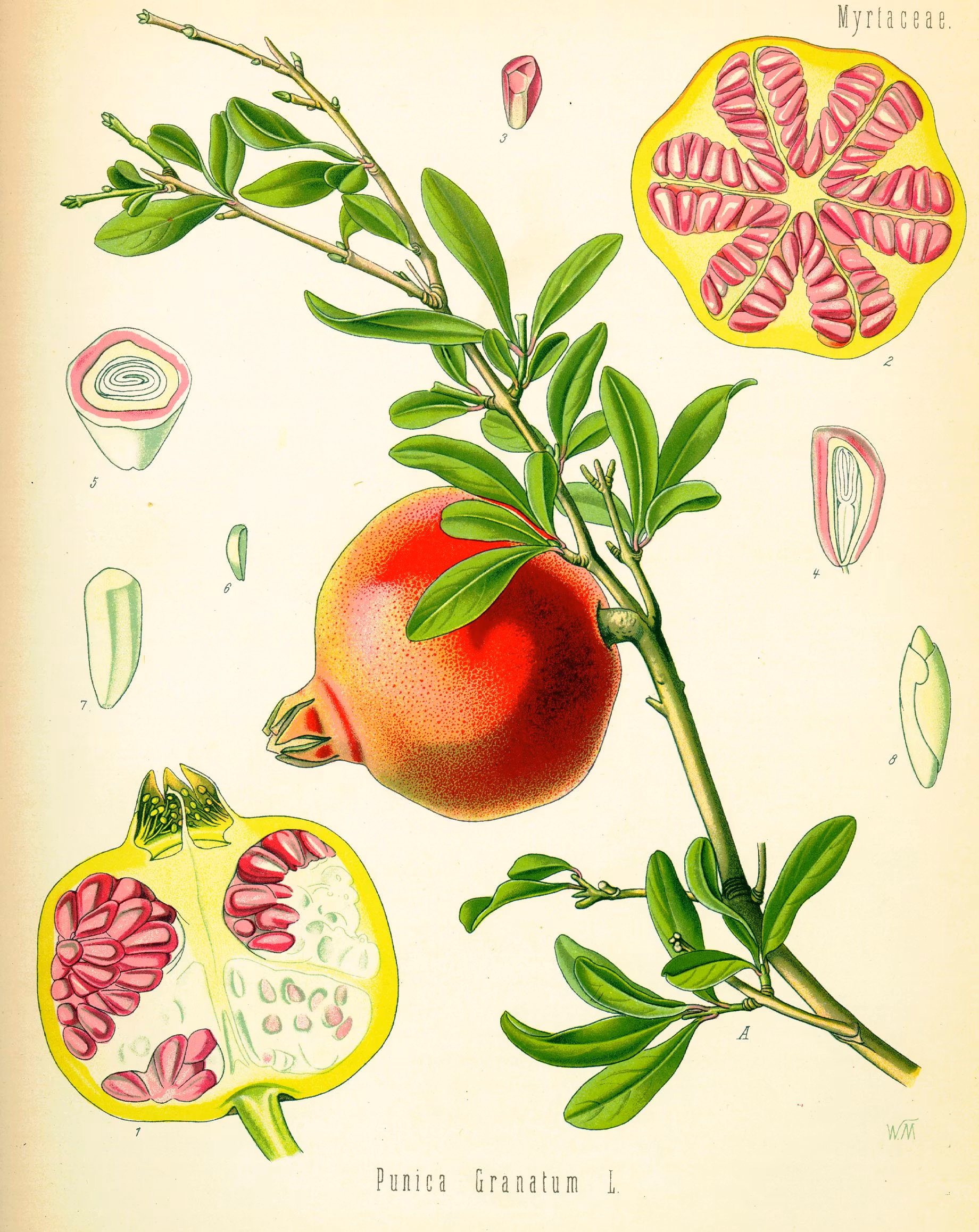 GRANATÄPPLE (60 x 47 cm) från Köhler's Medizinal-Pflanzen (1887-1898) av Hermann Adolph Köhler och publicerad av Franz Eugen Köhler.