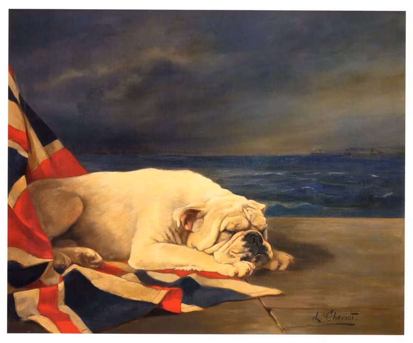 Ett av de allra mest imponerande bulldog porträtten. En edvardiansk kraftsalva från den starkt patriotiska engelska konstnärinnan Lilian Cheviot (1876-1936).